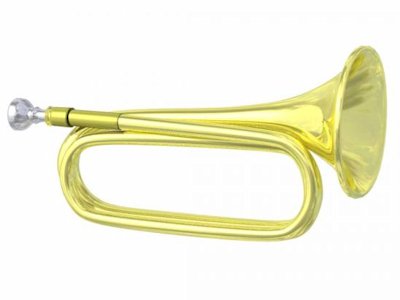 1. A brass instrument without valves; used for military calls and fanfares. Bugles play "Taps" at a soldier's funeral.