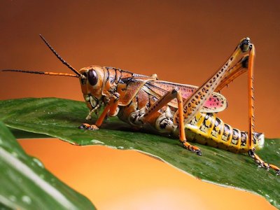 1. Leaping insect; male makes chirping noises by rubbing the front wings