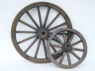 wheels on a wooden axle.