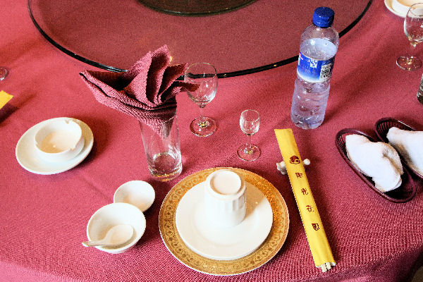 Dining Room Place Setting - 1 On this evening in Nanjing we had dinner in the hotel Dining room not in a private dining room. A Chinese friend of many years helped with the ordering of the dishes. He knows what kind of dishes Bernice and I like but always orders some dishes we don't know about to broaden our horizons. We appreciate both of these approaches. Glasses are provided for soft drinks, wine and hard liquor. If you don't wish any of these simply turn the glass over and it will be removed. Use the wet towel for your hands and face and place it back in the holder and it will be removed. ⇦ Back to Last Scene On to Next Scene ⇨Hi-Res Pic (210K) Return to Nanjing Hotel Dining - Page 1 |
