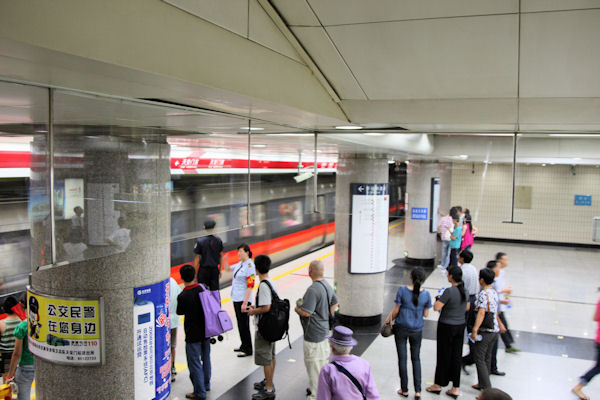 Beijing Subway Subway Train Platform - 11 We have finally found the platform for our train. We are traveling from Tiananmen East (Tiananmendong) to Jianguomen. The lady in lavender blouse and purple hat is Bernice Noll. On to Page 12 ⇨⇦ Back to Page 10 Hi-Res Pic (140K) Return to Beijing Subway Scenes - Page 2 |