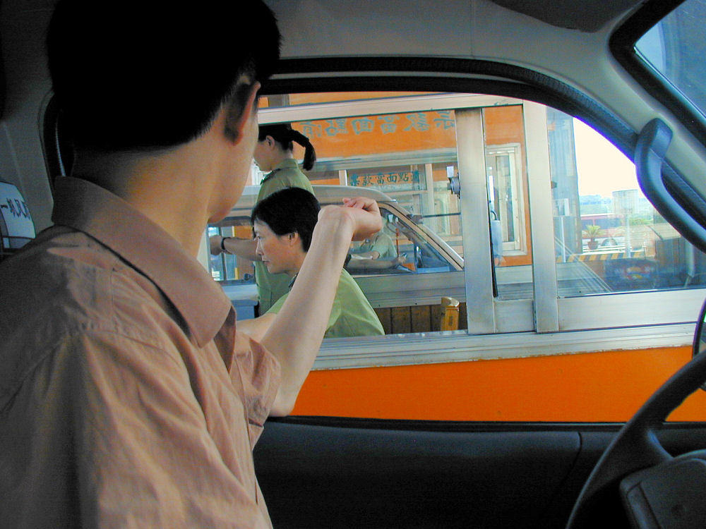 6. Xuchang Freeway Toll Booth - Here our driver pays the toll as we exit the freeway to the city of Xuchang. Tolls remain relatively cheap varying mostly in the range of one to two dollars US. |