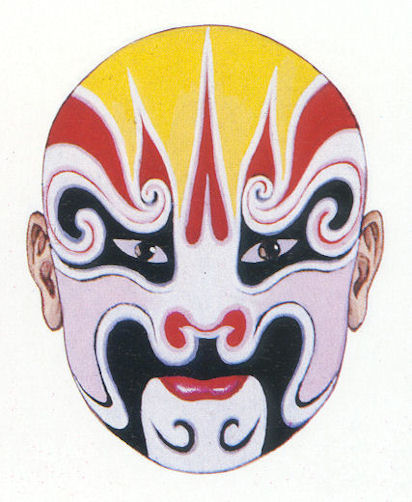 183 Beijing Operas - Yang Lin - Number 156 Yang Lin Beijing Opera - "Shi Xiu Spies on the Village" Yang Lin with a yellow flowered ingot face plays a leading part in the opera "Shi Xiu Spies on the Village." When the Liangshan outlaws are attacking Zhu Family Village, Song Liang sends two spies, Yang Lin and Shi Xiu, into the village to gather information. Yang Lin, unfamiliar with the village lanes, is captured. But Shi Xiu, with the help of an old man, makes his escape and brings back information on the secret signals used by the villagers/ Return to Lists of Beijing Operas - Page 4 |