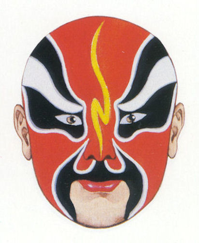 183 Beijing Operas - Chi Fushou - Number 184 Chi Fushou Beijing Opera - "The Capture of Jinling" Chi Fushou with a red pointed three-tile face has a role in the opera "The Capture of Jinling." Chi was the son-in-law of the Yuan emperor. He defended Jinling against attacks by armies of the Ming. When overpowered by superior forces, he committed suicide. See Mask 181 for the story. Another Mask for this Opera - Mask 181Return to Lists of Beijing Operas - Page 3 |