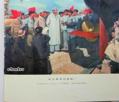 Poster 9 -- Chairman Mao arrives at the shipyard