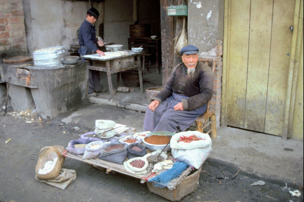 Chengdu, Sichuan 52. Spice Seller This is the spice market in Chengdu. Sellers of like types of goods flock together to sell their wares. The city rents out space to these vendors at a very reasonable price. All manner of spices are available here. But you buy them in bulk and store them in you own container. You either bring your own container or they put what you buy in an old newspaper for you to carry home. ⇦ Back to Page 51 On to Page 53 ⇨Hi-Res Pic (136K) Return to Chengdu Page 7 |
