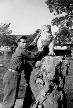 581st Signal Relay Troops Arrive in Korea 13. Seoul, South Korea -1952 I have no idea what this thing is but we evidently took a liking to it. This is Joe Lapera hugging and groping it so it must have been a female. On to Scene 14 Back to Scene 12Hi-Res Pic (121K) Back to Cpl. Shively Arrives Page 2 |
