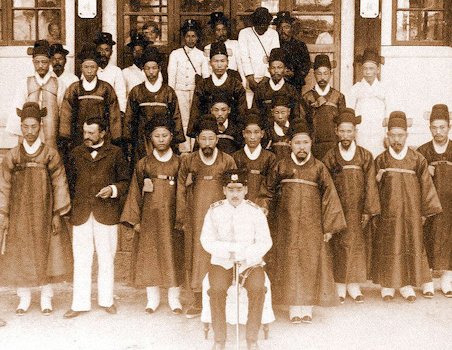 Officials of the Imperial Department of Communications in Seoul, 1903 pose for a portrait.