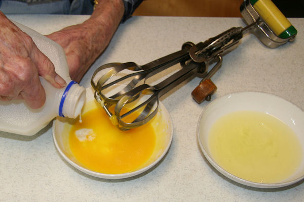 We added about 3-4 tablespoons of milk to the yolks. We used 2 percent milk. This will facilitate mixing up the yolks.