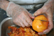 | Cobbler Work Station - 1 | Peel Peaches - 2 | Cut in Half - 3 | Halve Peach - 4 | |