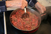 | 1. Fry Hamburger | 2. Remove Excess Fat | 3. Add Chopped Onion | 4. Put all together | |