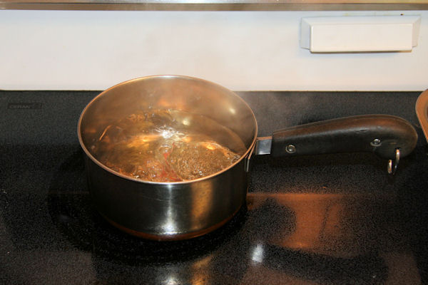 Heat Lids Paul next puts the lids in a small pan of water and turns on the heat under them. To help keep them from sticking together we alternate the lids top side up and down. Authorities warn against boiling them. We just put heat under them and turn off the heat when they boil. Keep them in the water until used. ⇦ Back to - Step 9 On to - Step 11 ⇨Return to Canning Carrots - Page 2 |
