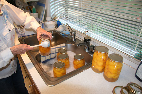 16 Steps to Canning Peaches Step 15, Wash the Jars The next day we remove the rings and wash the jars in warm soapy water. Failure to remove the rings means you cannot remove any jam under the rings. Rings are not needed until the jar is opened. Leaving the rings on invites corrosion under the rings and can lead to much difficulty in removing them at a later date. Any residue of jam left on the jar is an open invitation to ants. They will love you for that. When the jars are dry, mark the top with the year they were canned. ⇦ Back to Step 14 On to Step 16 ⇨Return to Canning Peaches Page 2 |