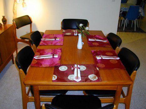 Nolls Oregon Home Chinese Place Setting In 2005 one of our former students James Moo in Zhengzhou sent us the beautiful place settings for six. We often cook Chinese food at our home. Paul has become a good Chinese Chef. For your viewing pleasure we show a formal six-place setting for a fancy Chinese dinner. Most of our Chinese dinners we do with less fancy setting to give our guests a better flavor of a real example of a typical Chinese dinner. Return to Nolls Cooking ChoicesHi-Res Pic (142K) |