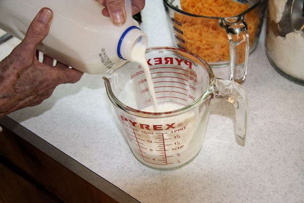 We measure our 2 and 1/2 cups of milk. We used 2 percent but you could have used 3% or 1%.