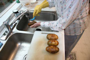 | 1. Scrub Potatoes | 2. Halve Potatoes | 3. Slice Potatoes | 4. Grate Cheese | |