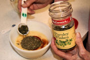 | 9. Add Basal Leaves | 10. Add Parsely Flakes | 11. Add Oregano | 12. Add Catsup | |