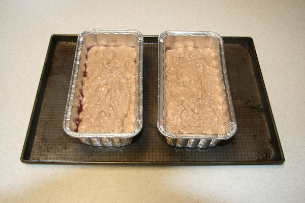 We have covered the two cobblers with the topping. We put them on a cookie sheet with short sides to be put into the oven.