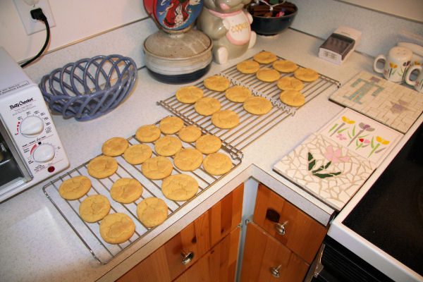 Snickerdoodle Cookies -- Step 13 Place on Rack to Cool When we remove the cookies after the are just slightly brown, we wait about 2 minutes for them to harden before putting them on the rack to cool. You need to let them harden otherwise they are too soft. This is a good time to test one or two to make sure they are satisfactory. ⇦ Back to Step 12 On to Step 14 ⇨Return to Snickerdoodles Page 2 |