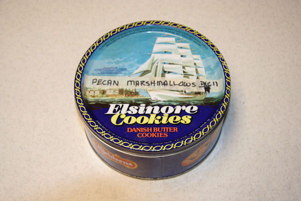 Making Pecan Marshmallows 15. Mark Container We marked the cookie tin using some masking tape. We indicated the contents and the month and year. They will keep frozen for 4-6 months. ⇦ Back to Step 14 On to Step 1 ⇨Return to Pecan Marshmallows - Page 2 |
