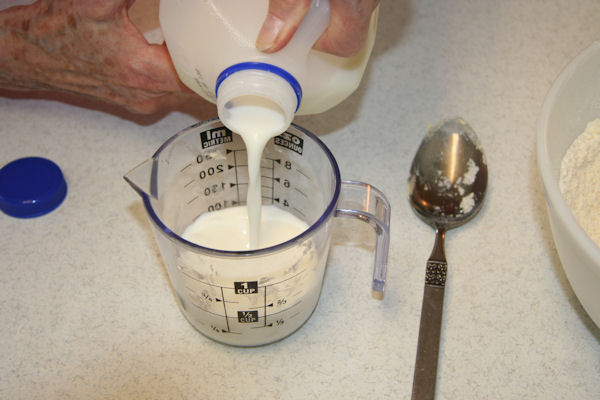 We now measure out 3/4 cup of milk. We used 2% milk. You could have used 1% or 3% milk but not use skim milk.