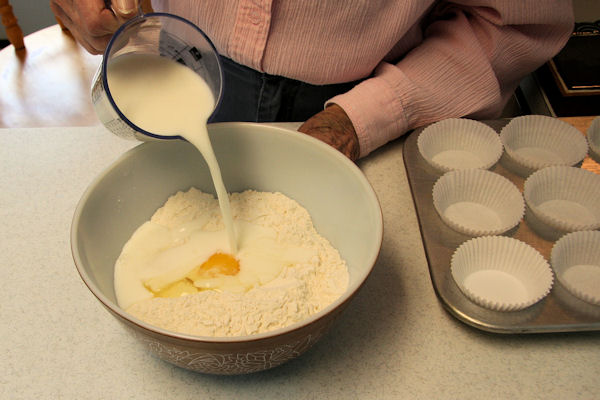 Add the 2 cups of milk to the bowl with the flour mixture.
