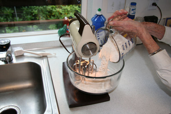Making Popovers - Step 4 Flour into Mixer We next put the flour with the salt into our old Sunbeam Mixmaster. It has been with us for many years. Paul had to replace the brushes on the motor after 25 years. ⇦ Back to Step 3 On to Step 5 ⇨Return to Thumbs Page 1 |
