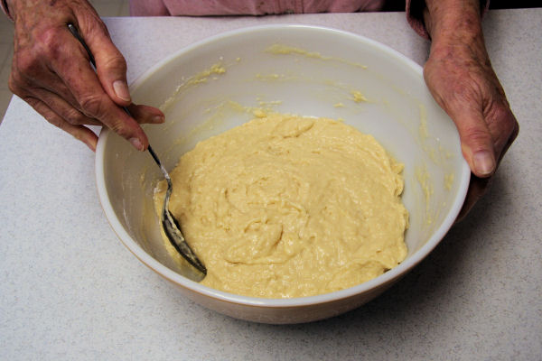 We have completed mixing it all up. Note how full the bowl is at this time.
