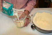| 13. Measure Buttermilk | 14. Pour Buttermilk | 15. Mix from Sides | 16. Flour Hands | |