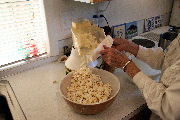 | (1) Assemble Ingredients | (2) Air Popcorn Popper | (3) Popping Corn | (4) Add Peanuts | |