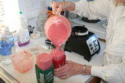 | (1) We Pick Strawberries | (2) Cut Frozen Strawberries | (3) Into the Blender | (4) Add Sugar | |
