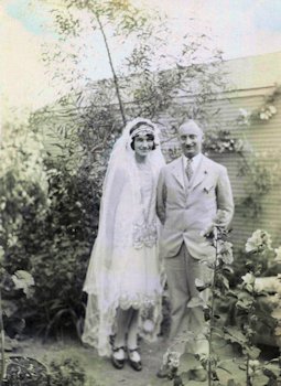Myra Lee Crawford Life 9. Myra Crawford Marries Mark Daniel Noll - 1929 The happy couple pose with Mom in her bridal dress. My Dad was a Major in the US Army stationed in Seattle. Major Noll had served in World War I in France and in the Phillipines during World War II. Mark taught at Idaho State College in Nampa, Idaho. The couple later moved to San Jose where my oldest brother Mark Donald was born in 1930. Soon after that the family moved to New Jersey where James Crawford Noll was born in December 30, 1930. Soon after that the family travelled by car to Seattle where I, Paul Stanley Noll was born in 1931. Thus, ironically, they managed to have three sons born in states as far apart as was possible. My Mom looks beautiful on that happy day. Unhappily the marriage did not last very long. ⇦ Back to Page 8 On to Page 10 ⇨Hi-Res Pic (194K) Return to My Mom's Life - Page 2 |