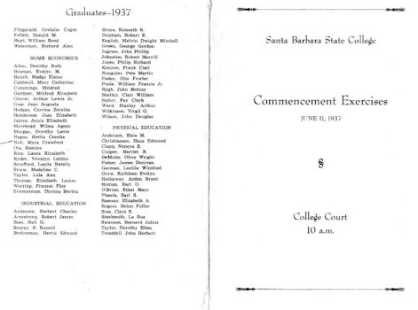 Myra Lee Crawford Life 13. Myra Gets Her BS Degree at Santa Barbara State College On 11 June 1937 Myra gets her BS degree from Santa Barbara State College. That college is now the University of California at Santa Barbara. I know now that she worked hard to get that. She and Mark Noll had divorced, The three of us boys spent summers with our Grampa Noll in Gig Harbor Washington so she could take classes. ⇦ Back to Page 12 On to Page 14 ⇨Hi-Res Pic (95K) Return to My Mom's Life - Page 2 |