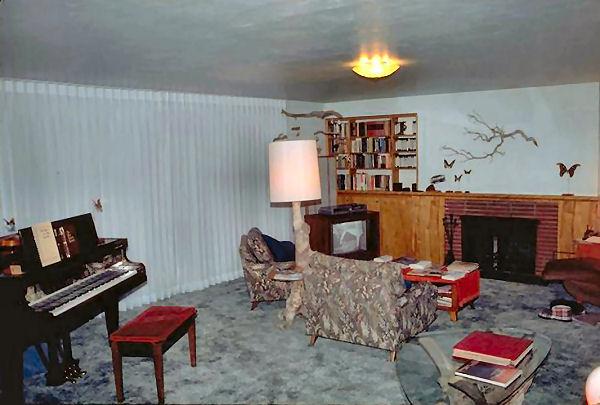 The picture shows the living room of our home. We had the room carpeted and both of us made the drapes from fine bed sheeting.