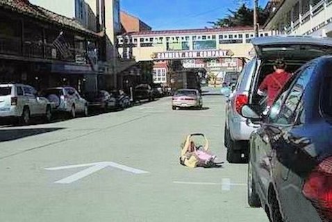 The outstanding mother carefully puts her baby in an approved baby car seat.