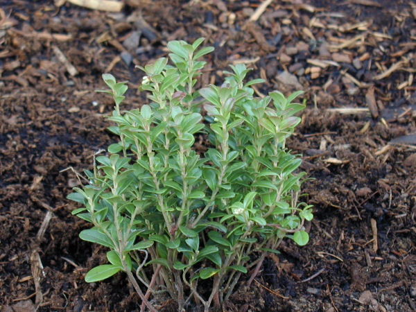 Flowers Growing at our Home Red Pearl Lingonberry Popular in Scandinavia since the days of the Vikings. Upright evergreen suitable for sun or part shade. Plant alone or in rows. Very hardy in the cold. Has nutritious fruit. Striking evergreen plant to 16" high. Delicious berries for preserves. pastries, and fruit dishes. We planted one in 2005. ⇦ Back to Previous Flower On to Next Flower ⇨Hi-Res Pic (237K) |