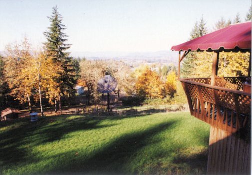 Nolls Oregon Home in 1996 9. Lawn and Hot Tub Here you can see part of the hot tub with its old railing. Also it had been constructed rather in a flimsy fashion. You can see the top is help up by 2X2s fastened only to the top of the rail. In the middle left you can make out the old large dish. It would turn when ever you changed stations. It sat on a large concrete slab. The edge of the lawn just tapered off on a slope that was sliding down the hill. ⇦ Back to Page 8 On to Page 10 ⇨Hi-Res Pic (157K) Here to See the Change Return to Noll Home Scenes - Page 2 |