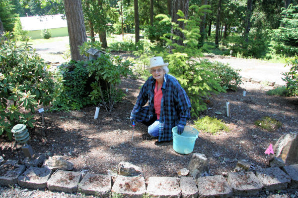 Nolls Oregon Home Bernice Gardening - 42 Bernice is weeding in the small circle in 2008. She loves having lots of flowers to weed and take care of. Because dozens of small trees grow as volunteers from the big trees. We transplant them into the open areas around the house. Over the years we transplanted about 40 of these small trees. We like trees. ⇦ Back to Page 41 On to Page 43 ⇨Hi-Res Pic (231K) Return to Noll Home Scenes - Page 6 |