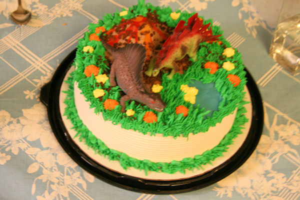 Picture 5 We choose our decorated cake with great care. Our local Dairy Queen offers some dozens of selected sizes and decorations for their cakes. Landon as a child, has alway expressed great interest in both dinosaurs and volcanos. So it made sense to had a cake with both of them. The next Sunday we donated the dinosaurs at Landon's request, to one of the children at our church. ⇦ Back to Picture 4 On to Picture 6 ⇨Hi-Res Pic (171K) Return to Landon's Fifty-First Birthday |
