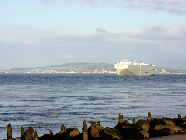 Columbia South Jetty, Oregon 7. Ship outbound on Columbia River Channel We drove out to some other spots east of the jetty to get close to the Columbia River. We observed this large ship on its way out to sea. Part of the old railroad trestle can be seen at the bottom. ⇦ Back to Page 6 On to Page 8 ⇨Return to Columbia South Jetty |