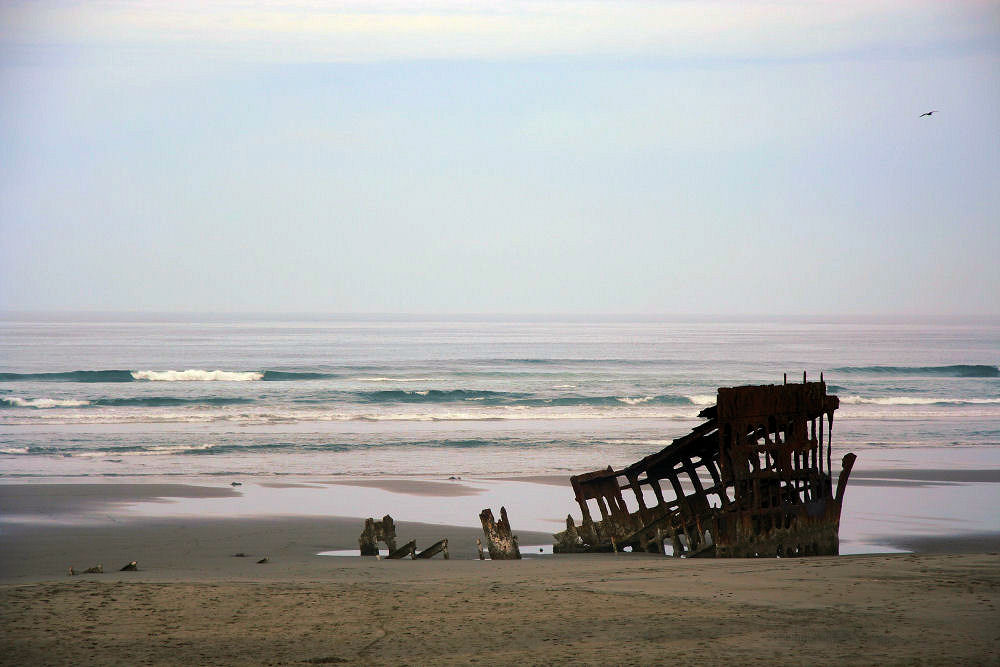 23. Wreck of the Peter Iredale 2007 - The rusted Wreck of the Peter Iredale, a British Four-masted barque. Wreck seen in 2007.