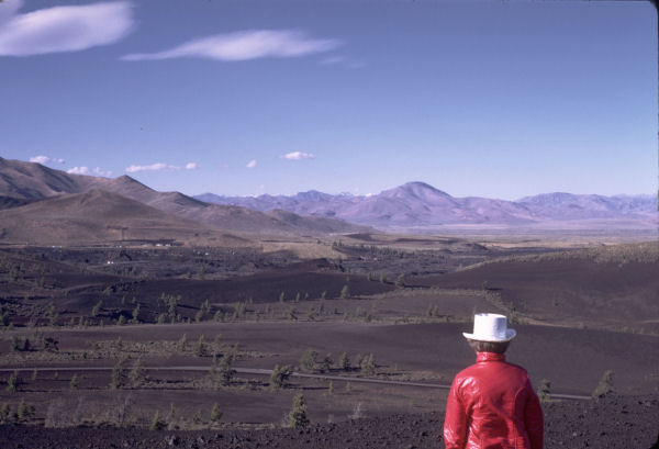 Craters of the Moon 11. Bernice Surveys the Lava Fields The Craters of the Moon lava field spreads across 618 square miles and is the largest young basaltic lava field in the lower 48 states. Sixty distinct lava flows form the Craters of the Moon lava field ranging in age from 15,000 to just 2,000 years old. ⇦ Back to Page 10 On to Page 12 ⇨Hi-Res Pic (97K) Return to Craters Choices - Page 2 |