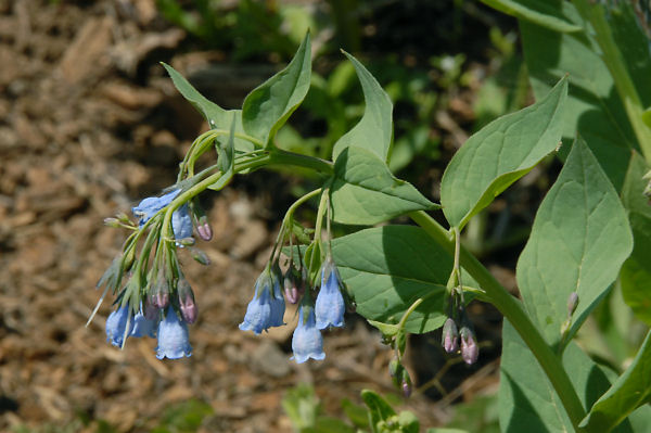 Wildflowers Found in Oregon Tall Bluebells Mertensia paniculata - Locally common, early summer, perennial, 2-5 ft. Ascending to trailing stems few to many. Leaves with hairless upper surface, underside hairy. Basal leaves 2-8 in. long, about 1/2 wide as long. with long petioles. egg-shaped to heart-shaped; stems leaves thin, easily bruised with obvious veins and short petioles. Flowers blue, occasionally pink, in loose cluster among top leaves. Flower is a short tube flaring into longer bell shape with 5 lobes, hairy. Grows in moist meadows and woods in mountains to 8000 ft. On to Next Flower ⇨Hi-Res Pic (131K) Hi-Res Pic Flower (125K) |