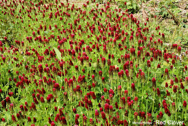 Wildflowers Found in Oregon Crimson Clover (Italian Clover) Trifolium incarnatum - This upright annual herb grows to 20-50 cm tall, unbranched or branched only at the base. The leaves are trifoliate with a long petiole, each leaflet hairy, 8-16 mm across, with a truncated or bilobed apex. The flowers are produced throughout the spring and summer, rich red or crimson, congested on an elongated spike inflorescence 3-5 cm tall and 1.5 cm broad; the individual flowers are up to 10-13 mm long and have five petals. The banner of each flower does not sit upright, but folds forward. Crimson clover is widely grown as a protein-rich forage crop for cattle and other livestock. It can typically be found in forest margins, fields and roadsides. Nonnative On to Next Flower ⇨ |
